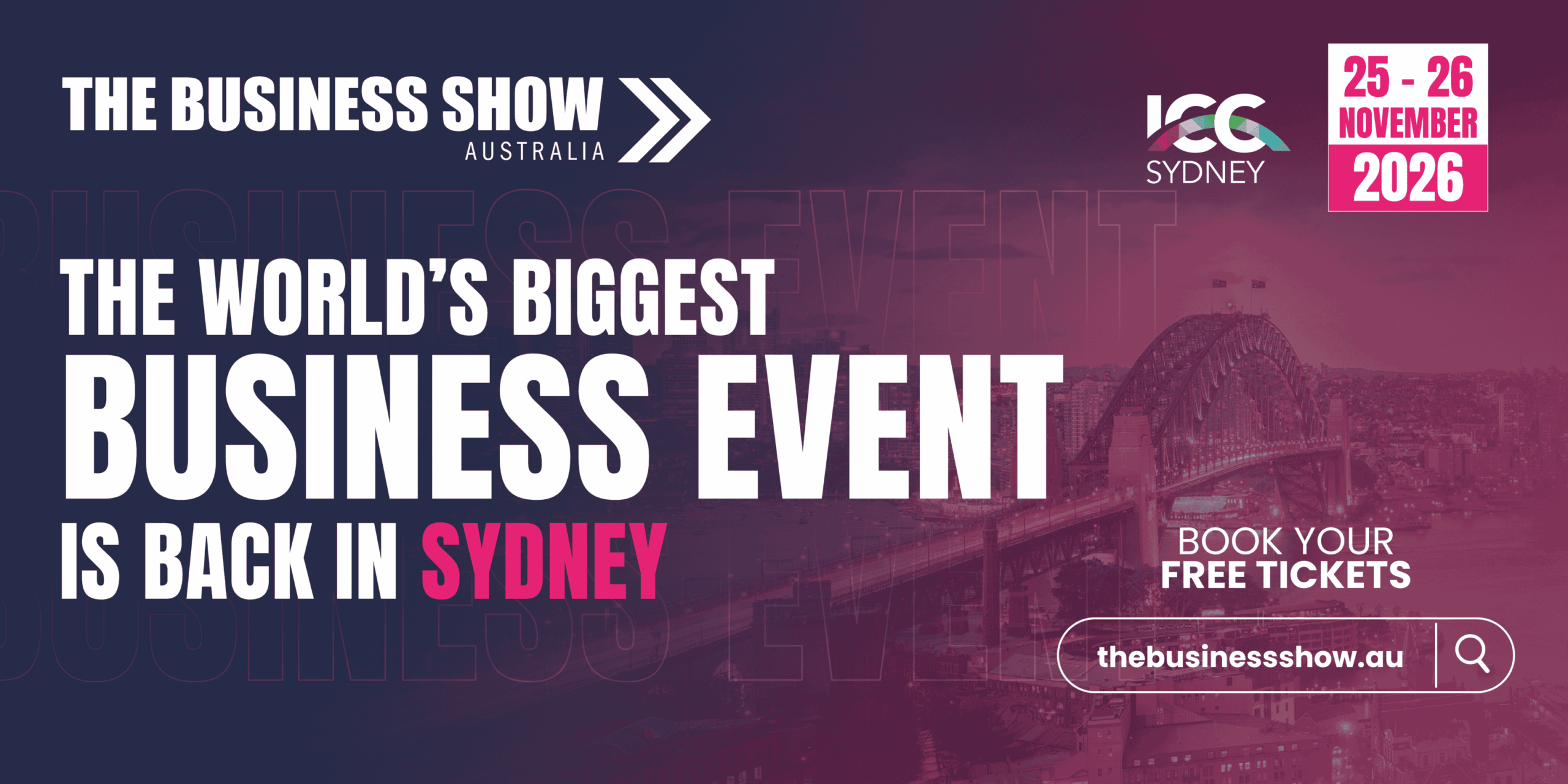 The Business Show Australia returns to ICC Sydney on 25–26 November 2026, building on the momentum of our breakthrough launch with a sharper, more ambitious vision for the year ahead. This edition will bring together more than 8,000 founders, business leaders, and senior decision-makers who are shaping the next wave of growth across Australia’s SME sector.